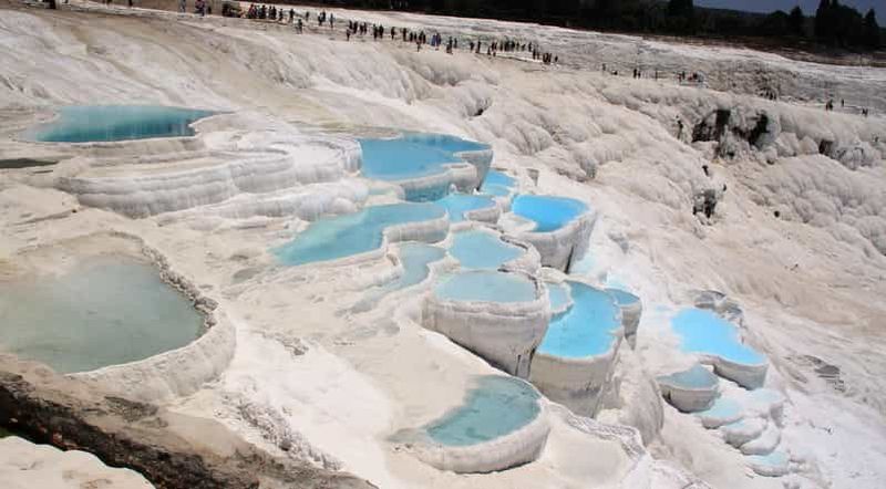 Au départ d'Antalya, voyagez vers le " palais de coton " de Pamukkale et la cité antique de Hiérapolis, lors d'une visit...