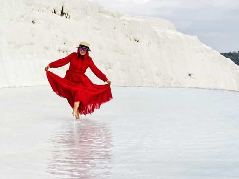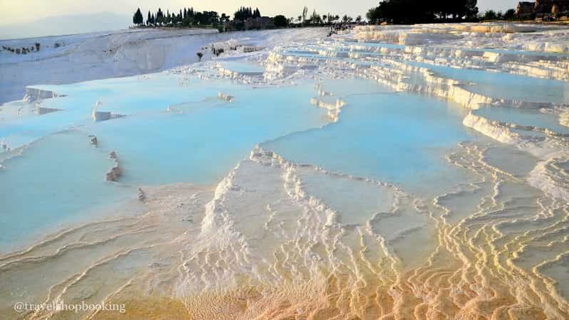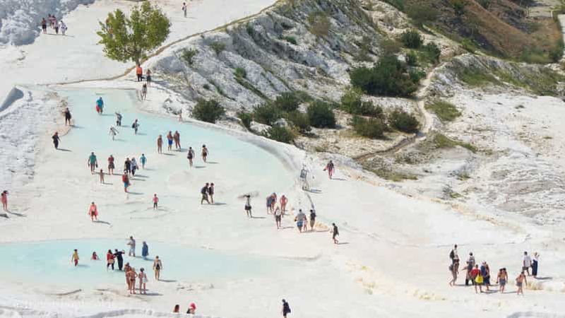 Visitez les terrasses naturelles de travertin de Pamukkale, site inscrit au patrimoine mondial de l'UNESCO, et la zone a...