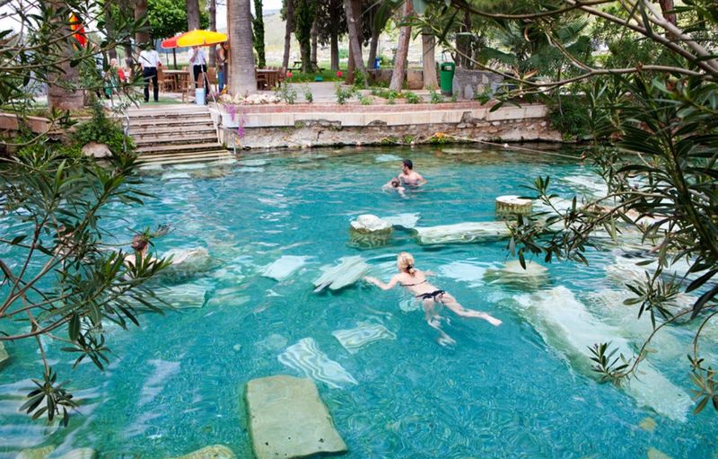 Incontournable pour les amateurs d’histoire et de bien-être, la piscine antique de Cléopâtre aurait accueilli la reine égyptienne lors de son séjour en Asie Mineure. Alimentée par une source thermale, elle affiche une température avoisinant les 36 °C. Au fond, gisent encore d’anciennes colonnes et vestiges romains, offrant un décor exceptionnel. Selon la légende, ces eaux chargées en minéraux auraient des vertus rajeunissantes, un privilège autrefois réservé à la noblesse.