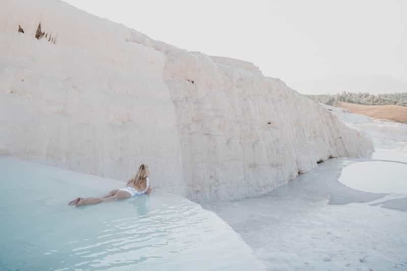Avec cette option : véhicule privé, guide touristique et déjeuner buffet ouvert sont inclus. Vous disposerez au total de 4 heures de temps libre à Pamukkale. (Les frais d’entrée sont facturés en supplément.)
