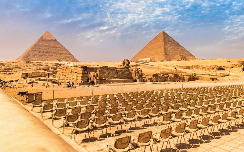 La légende veut que le Sphinx ait été érigé sous le règne de Khéphren, tailleur d’édifices. Conçu dans un unique bloc de calcaire du plateau de Gizeh, il témoigne de la maîtrise technique des artisans de l’époque. Vous admirerez ce savoir-faire exceptionnel reflétant la puissance et l’audace architecturale des anciens.