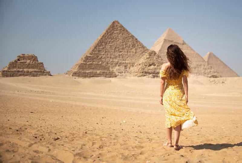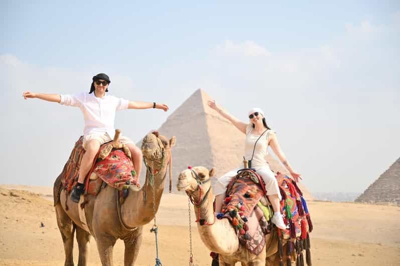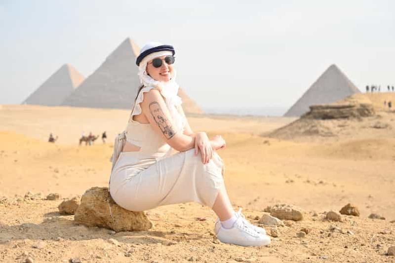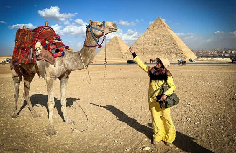 Cette option inclut une visite partagée des pyramides de Gizeh, du Sphinx et du musée égyptien, avec les frais d'entrée et le déjeuner.