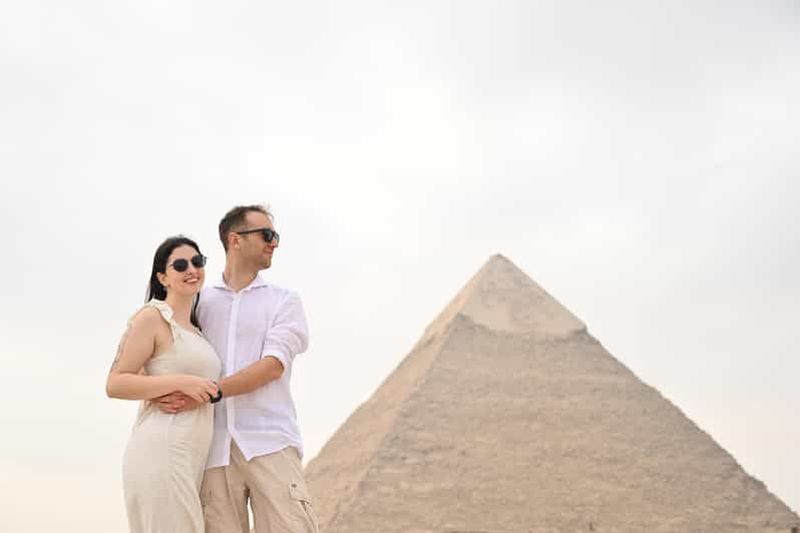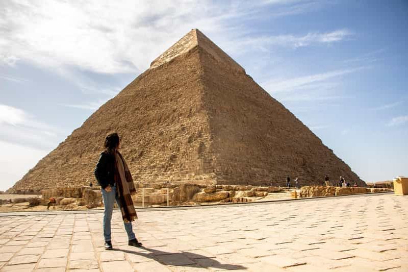 Cette option inclut une visite partagée en français, incluant les pyramides de Gizeh, le Sphinx et le nouveau Grand Musée égyptien, avec les frais d'entrée et le déjeuner.