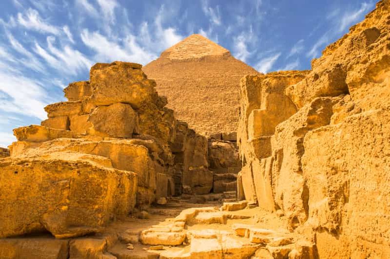 La légende veut que le Sphinx ait été érigé sous le règne de Khéphren, tailleur d’édifices. Conçu dans un unique bloc de calcaire du plateau de Gizeh, il témoigne de la maîtrise technique des artisans de l’époque. Vous admirerez ce savoir-faire exceptionnel reflétant la puissance et l’audace architecturale des anciens.
