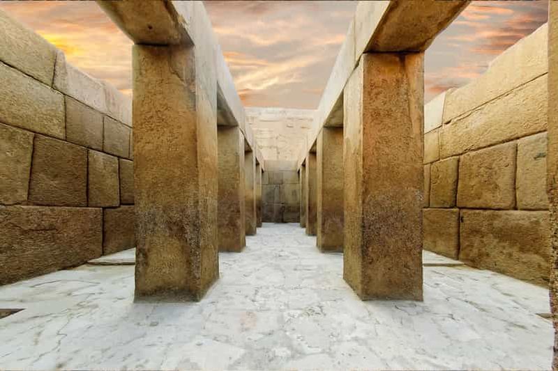 Ces deux temples, situés à proximité du Sphinx, datent de l’Ancien Empire égyptien et témoignent de la sophistication architecturale de la IVème dynastie. Le Temple du Sphinx, construit en calcaire, aurait servi aux rites de purification associés au culte funéraire. Quant au Temple de la Vallée de Khéphren, il présente une structure en blocs massifs et offrait un accès direct à la chaussée menant à la pyramide de ce pharaon.