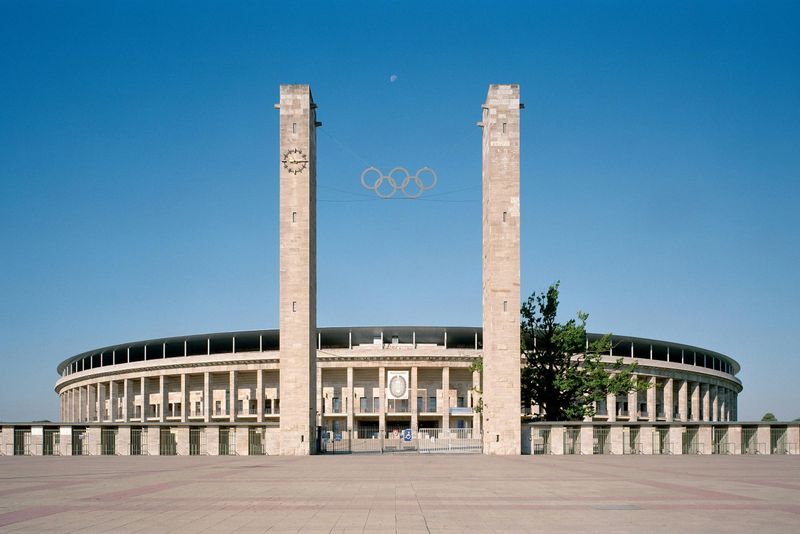 Le Stade Olympique de Berlin a été construit en 1934 sur l’ordre du Troisième Reich pour accueillir les Jeux Olympiques de 1936. Avec une capacité initiale de 100 000 spectateurs, il est rapidement devenu un symbole de la puissance nazie. Cet évènement est notamment célèbre pour les exploits de l’athlète américain Jesse Owens, qui a remporté quatre médailles d’or, défiant ainsi les idéologies racistes de l’époque.