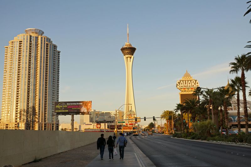 Située sur le célèbre Strip de Las Vegas, le Stratosphere Las Vegas est un incontournable. Pour s’y rendre, vous pouvez prendre un taxi ou utiliser les nombreuses options de transport en commun disponibles. Si vous décidez de marcher, le Fremont Street Experience est à environ 30 minutes à pied vers le sud. Depuis le Bellagio, prévoyez environ 45 minutes de marche avec vue sur le Strip. Les amateurs de shopping peuvent rejoindre le célèbre Fashion Show Mall en seulement 20 minutes. Que vous préfériez un transport motorisé ou une promenade agréable, la Stratosphere est accessible à tous.