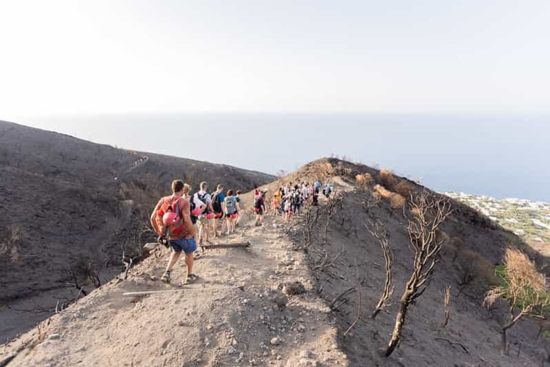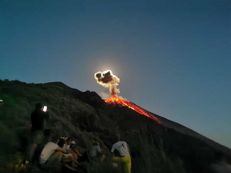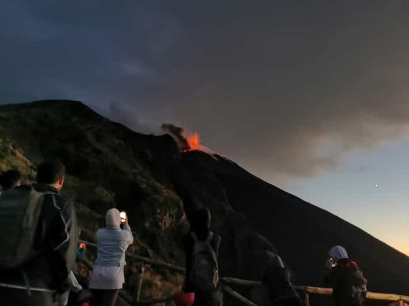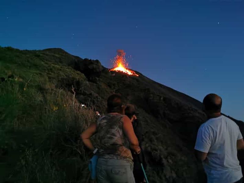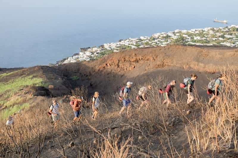Partez pour une randonnée guidée au coucher du soleil sur la Sciara del Fuoco du volcan Stromboli. Découvrez une petite ...