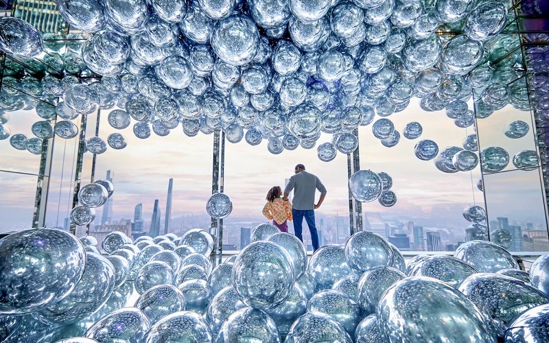 Les salles de miroirs « Reflect » et « Transcend » invitent à une exploration visuelle, où chaque angle reflète la ville et démultiplie l’espace. Inaugurées durant l’ouverture en 2021, elles combinent illusions d’optique et effets lumineux pour créer des environnements transformables. Cette double installation aiguise la curiosité des visiteurs, qui découvrent des perspectives oniriques sur Manhattan.