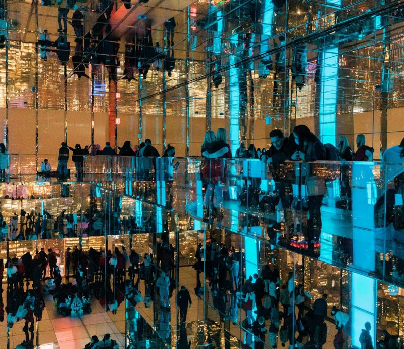 L’installation artistique « Air », imaginée par Kenzo Digital, emploie d’imposants miroirs pour transporter les visiteurs dans un univers sensoriel infini. Chaque surface réfléchissante crée une illusion sans fin, amplifiant les sensations de hauteur et d’espace. Cette conception unique redéfinit l’expérience d’observation en fusionnant créativité, technologie et vertige urbain refiné.