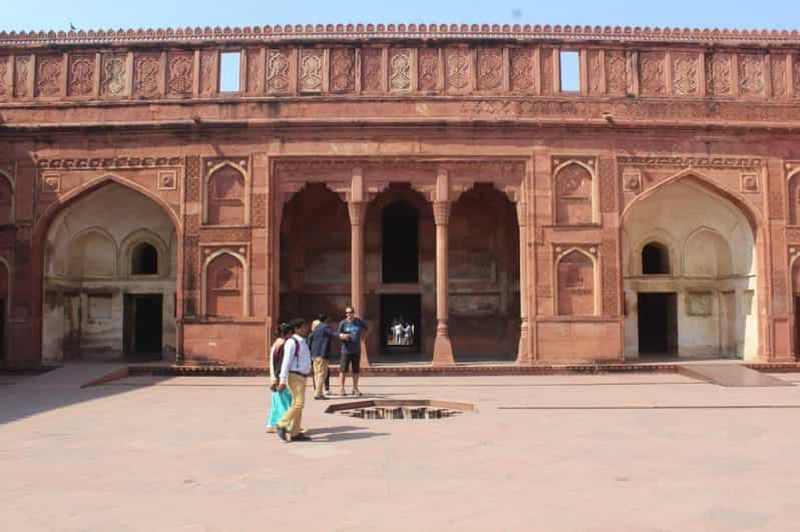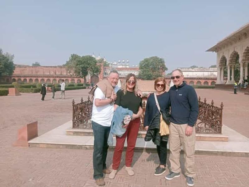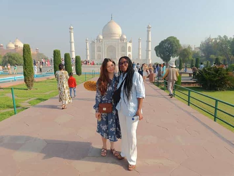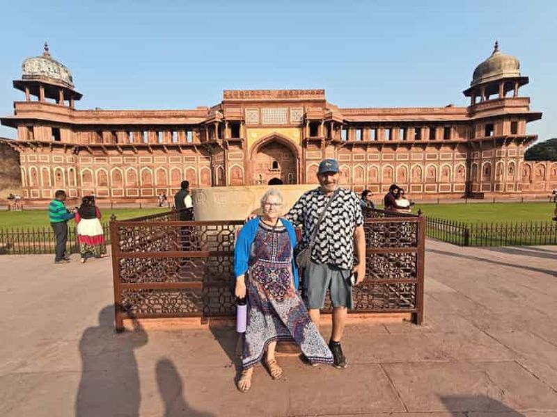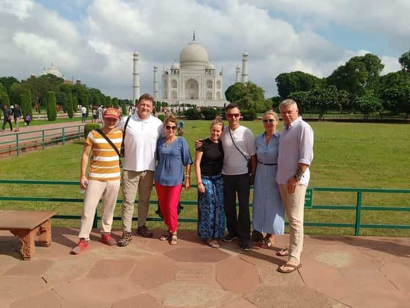 Cette option comprend la visite du Taj Mahal et du Fort d'Agra avec une voiture privée climatisée, un chauffeur et un guide. Les droits d'entrée aux monuments ne sont pas inclus.
