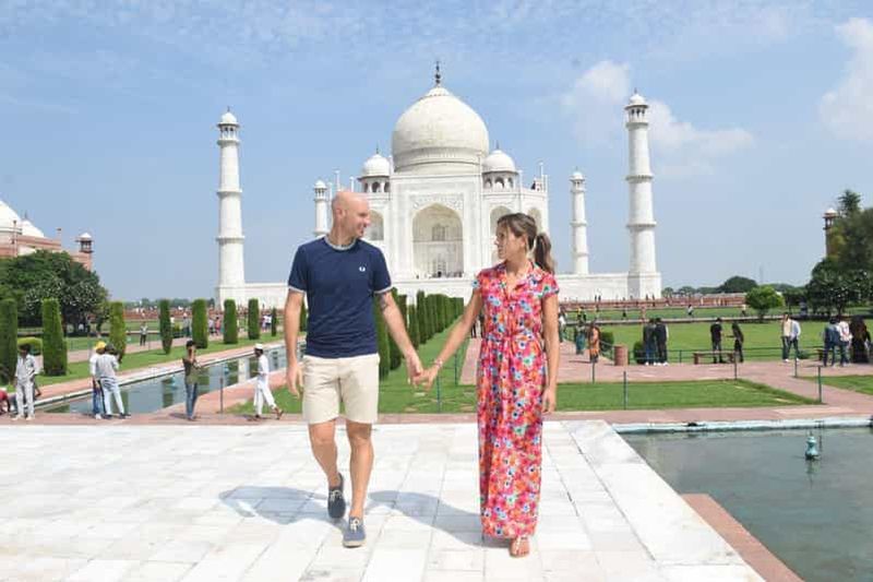 Découvrez la magie du Taj Mahal au lever du soleil lors d'une excursion privée d'une journée au départ de Delhi. Évitez ...