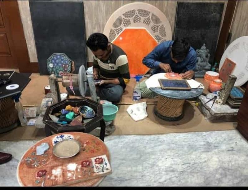Du marbre blanc orne l’édifice. Il provient principalement des carrières de Makrana au Rajasthan, réputées pour la pureté de leur pierre. Vous découvrirez également des pierres précieuses et semi-précieuses collectées à travers l’Asie. Intégrées avec soin et délicatesse, elles reflétent le raffinement impérial et la virtuosité des arts décoratifs moghols.