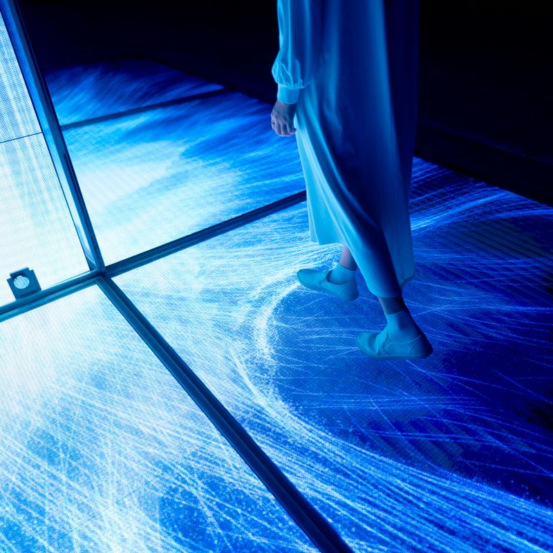 L’une des particularités de Planets réside dans son parcours aquatique, invitant à marcher pieds nus à travers des bassins peu profonds. Cette démarche inédite à Tokyo stimule les sens et favorise une rencontre tactile avec l’art. Les visiteurs se sentent totalement enveloppés, fusionnant davantage avec les projections et l’environnement sonore.