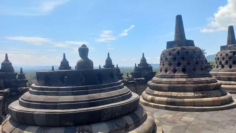 Depuis les niveaux supérieurs, vous profitez d’un panorama époustouflant sur la vallée environnante, encadrée par les volcans Merapi et Merbabu. Au lever du soleil, la brume enveloppe les reliefs, créant une atmosphère mystique. Les rayons dorés éclairent la pierre, révélant les détails de chaque sculpture. C’est un moment idéal pour la contemplation et la photographie.