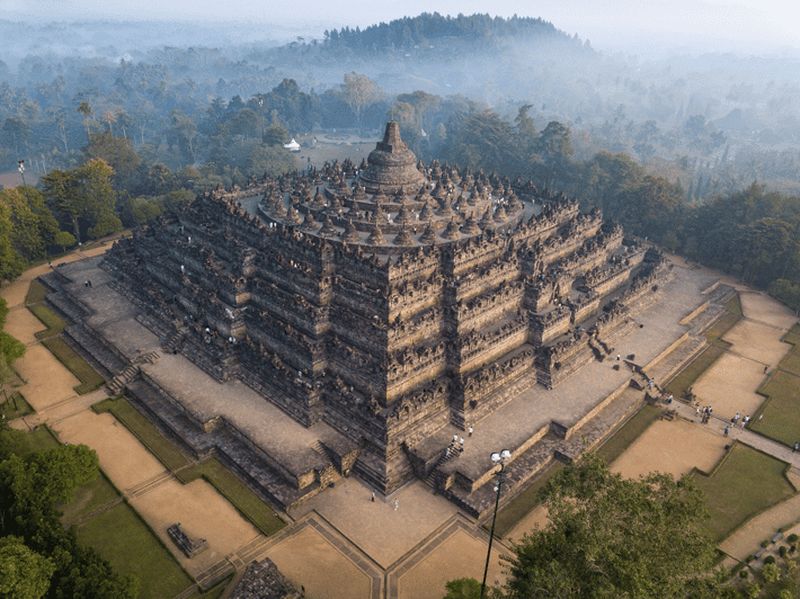 Érigé au IXe siècle par la puissante dynastie Sailendra, ce chef-d’œuvre en pierre volcanique s’élève majestueusement. Composé de près de deux millions de blocs, il témoigne d’un savoir-faire architectural remarquable dans la culture bouddhique de Java. Sa taille imposante en fait l’un des monuments religieux les plus spectaculaires de l’archipel.