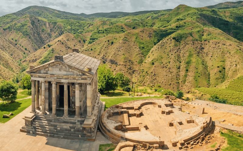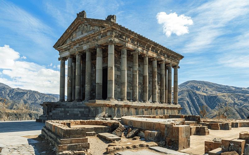 Le Temple de Garni, situé en Arménie, est un monument emblématique du 1er siècle, célèbre pour son design classique grec et ses frises ornées. Seul temple païen préchrétien préservé du pays, il était dédié au dieu Mithra. Perché sur une falaise offrant des vues spectaculaires, il représente la prouesse architecturale de l’époque et symbolise la fusion des influences culturelles gréco-romaines et arméniennes. Une visite incontournable pour les passionnés d’histoire et de culture.
