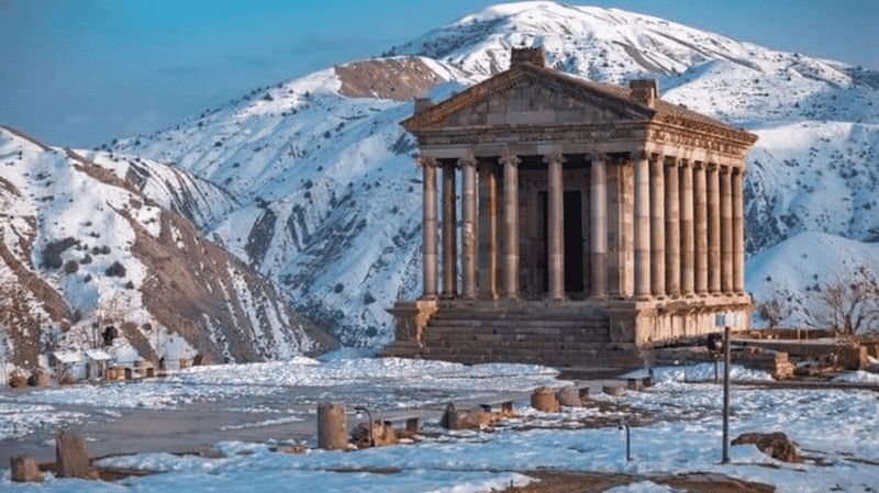 Le Temple de Garni, situé en Arménie, est un monument emblématique du 1er siècle, célèbre pour son design classique grec et ses frises ornées. Seul temple païen préchrétien préservé du pays, il était dédié au dieu Mithra. Perché sur une falaise offrant des vues spectaculaires, il représente la prouesse architecturale de l’époque et symbolise la fusion des influences culturelles gréco-romaines et arméniennes. Une visite incontournable pour les passionnés d’histoire et de culture.