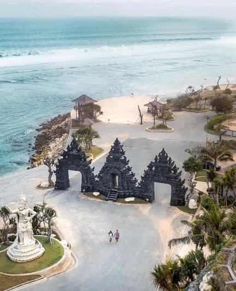 Le sanctuaire principal, connu sous le nom de Pura Luhur Uluwatu, fut érigé au XIe siècle par Mpu Kuturan, un grand sage javanais. Perché au sommet de falaises très vertigineuses, il est dédié à la protection spirituelle de l’île et constitue l’un des sad kahyangan (principaux temples) de Bali. Son architecture complexe mêle statues, autels et sculptures hindoues, reflétant puissamment la ferveur religieuse locale et l’influence de l’hindouisme balinais.
