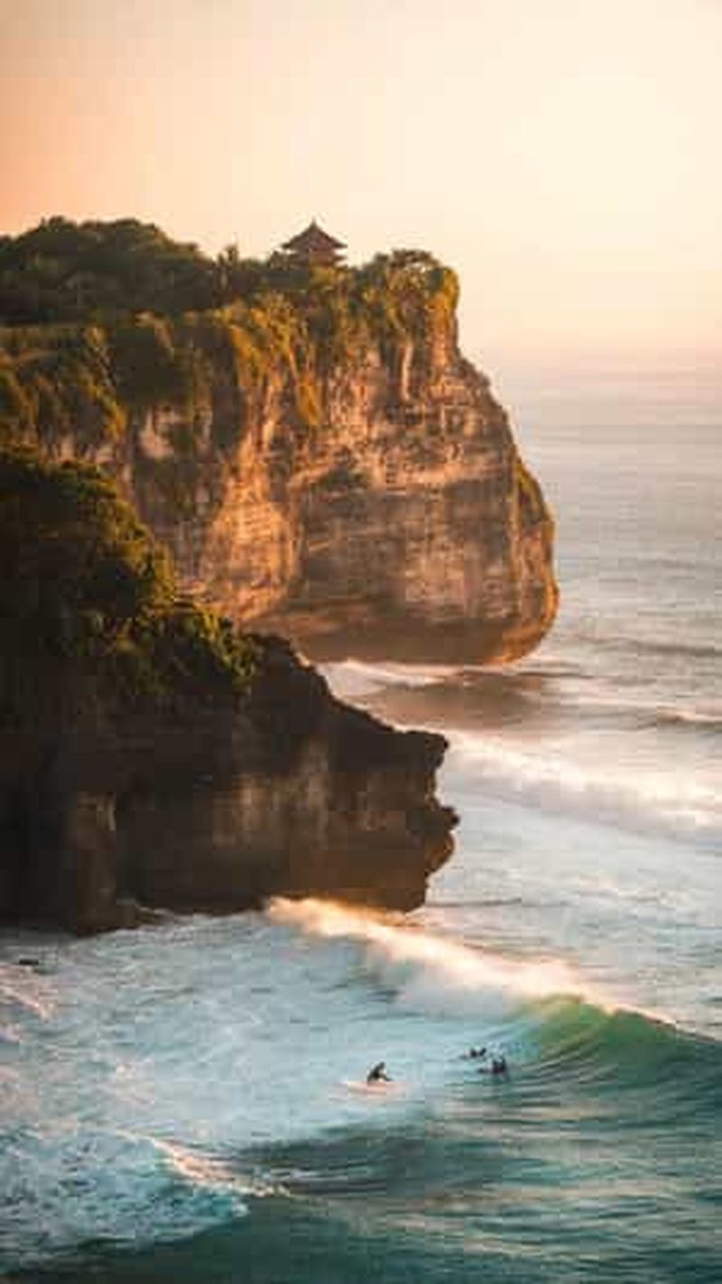 La réputation d’Uluwatu doit beaucoup à ses couchers de soleil spectaculaires. Depuis les plateformes aménagées le long des falaises, vous pourrez observer le soleil descendre à l’horizon dans un dégradé particulièrement beau d’orangé et de rose. Le spectacle, intensifié par le bruit des vagues et la brise maritime, est un moment fort. N’oubliez pas de vous y rendre tôt, car l’affluence y est souvent importante.