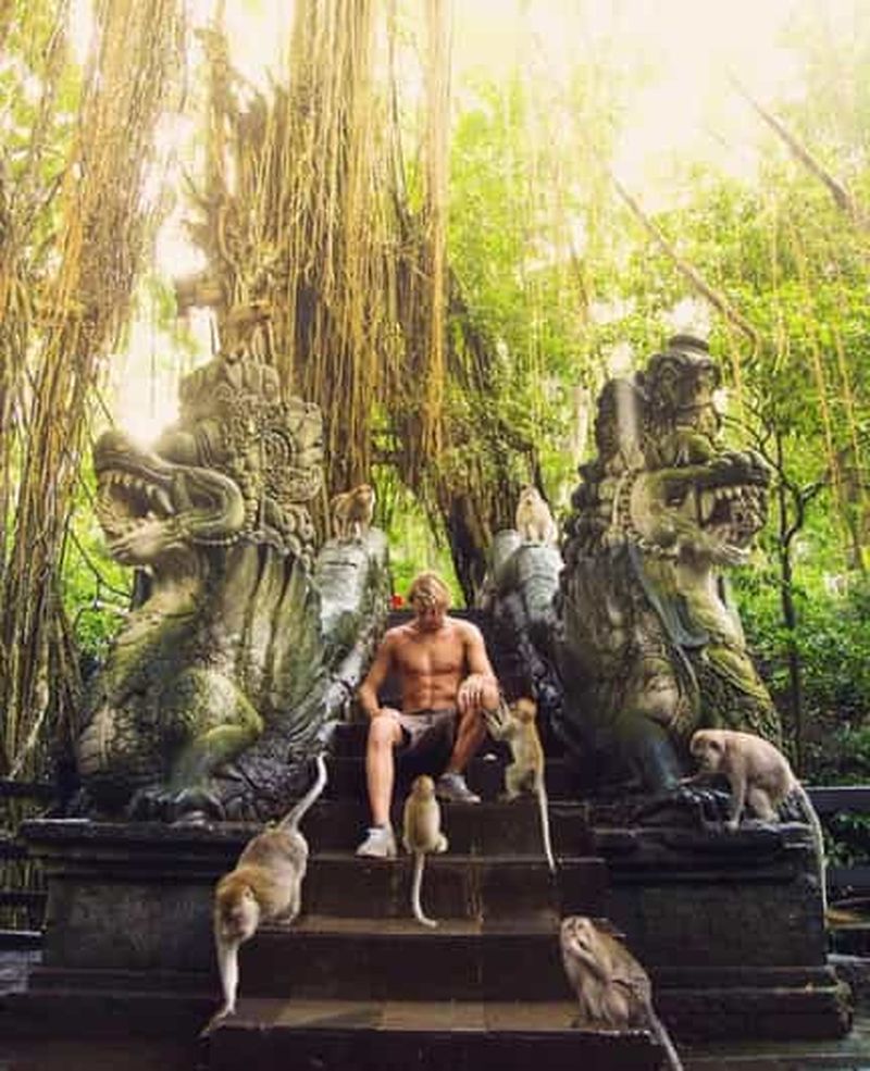 Ces singes, omniprésents sur le site, assurent un rôle de « gardiens » plutôt facétieux. Ils subtilisent lunettes ou chapeaux, ne les restituant qu’en échange de fruits ou gourmandises. Gardez un œil sur vos biens et jouez le jeu, un véritable rituel local que vous ne manquerez pas de vivre.