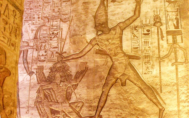 Chaque 22 février et 22 octobre, le soleil pénètre l’axe du sanctuaire pour éclairer les effigies de Ramsès II, d’Amon et de Rê-Horakhty durant quelques précieuses minutes. Cette illumination précise résulte d’un alignement millimétré orchestré par les anciens Égyptiens. Le dieu Ptah, associé aux ténèbres, demeure toujours volontairement dans l’ombre.
