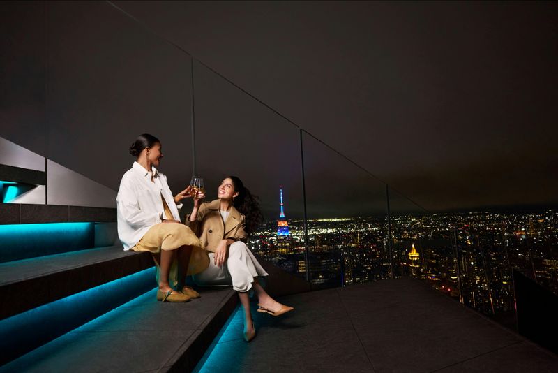 Les Skyline Steps offrent une transition fluide entre la plateforme et le niveau inférieur du 100e étage. Ces escaliers en plein air permettent de profiter de vues ininterrompues et de trouver des angles uniques pour capturer la ville de New York. Parfait pour se détendre et siroter une boisson tout en admirant le panorama ou tout simplement pour contempler l’agitation de la ville d’en haut.