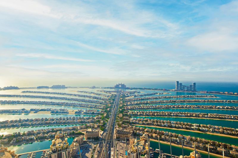 La configuration en palmier de Palm Jumeirah dépasse l’entendement par son envergure hors du commun. Visible depuis l’espace, cette forme magnifique confirme la dimension spectaculaire de ce projet d’ingénierie. Vous pouvez imaginer l’impact visuel total qu’il offre, tant pour les voyageurs que pour ceux qui survolent la région chaque jour.