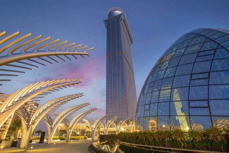 En descendant vers l’espace principal, vous traversez un tunnel aquarium majestueux, peuplé de poissons exotiques et autres créatures marines. Construit pour immerger les visiteurs dans la vie sous-marine du Golfe, ce passage transparent offre une vue à 360 degrés sur des espèces marines mystérieuses. Conçu avec des technologies de pointe, il s’intègre parfaitement à l’ambiance futuriste du site. Une halte idéale pour vous imprégner de la beauté marine avant d’admirer la skyline.