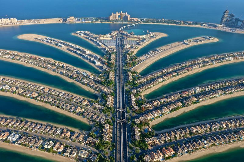 La configuration en palmier de Palm Jumeirah dépasse l’entendement par son envergure hors du commun. Visible depuis l’espace, cette forme magnifique confirme la dimension spectaculaire de ce projet d’ingénierie. Vous pouvez imaginer l’impact visuel total qu’il offre, tant pour les voyageurs que pour ceux qui survolent la région chaque jour.
