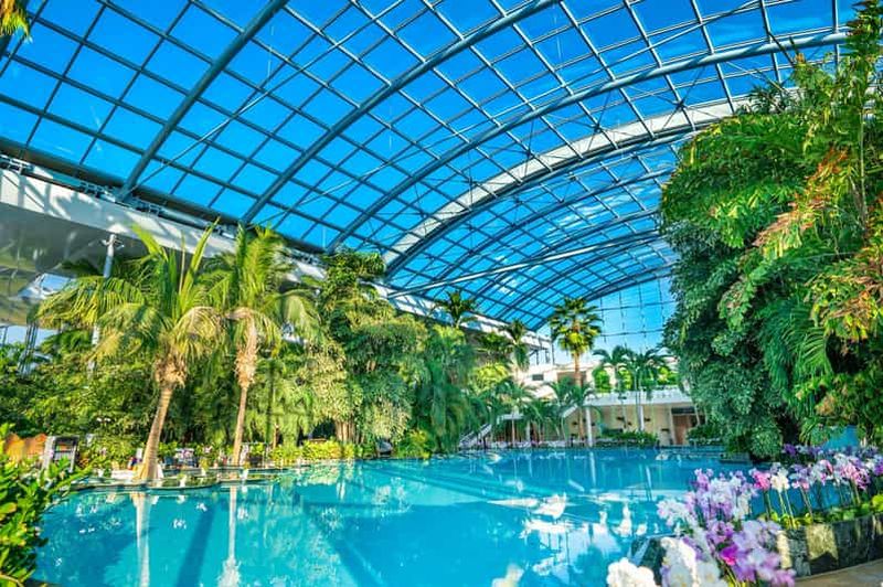 L’ensemble du complexe accueille plus de 800 000 plantes, dont 1 500 palmiers exotiques, créant ainsi un environnement tropical inattendu. Vous profitez d’une atmosphère intime, bercée par le murmure des feuillages. Cette végétation exceptionnelle procure une sensation immersive et transforme l’espace aquatique en un véritable jardin d’évasion et de détente.