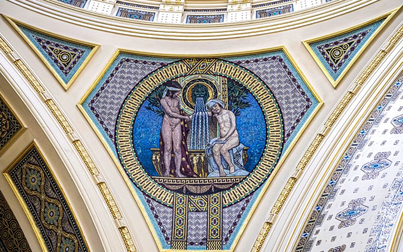 Érigé dans un style néo-baroque, le bâtiment fut conçu par les architectes Győző Czigler et Ede Dvorzsák, puis achevé en 1913. Ses façades ornées de statues, ses dômes et ses élégantes colonnes témoignent du faste de l’époque. Cette esthétique unique confère aux Thermes Széchenyi un charme, où le luxe d’antan se marie à la modernité des installations. Vous aimerez explorer les couloirs voûtés, prendre des photos et admirer chaque détail.