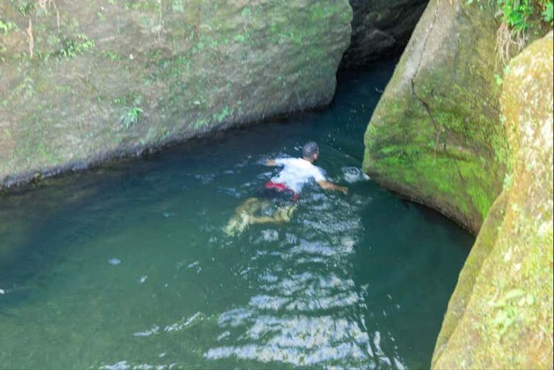 Le bassin de baignade au cœur de Titou Gorge est né de l’activité volcanique qui a fortement façonné l’île. Bordé de rochers de lave solidifiée, ce site renferme des eaux fraîches, alimentées en continu par la rivière locale. On estime que la formation de ce bassin remonte à plusieurs siècles, lorsque des coulées de lave ont créé un renfoncement naturel. Aujourd’hui, il constitue un lieu privilégié pour se rafraîchir.