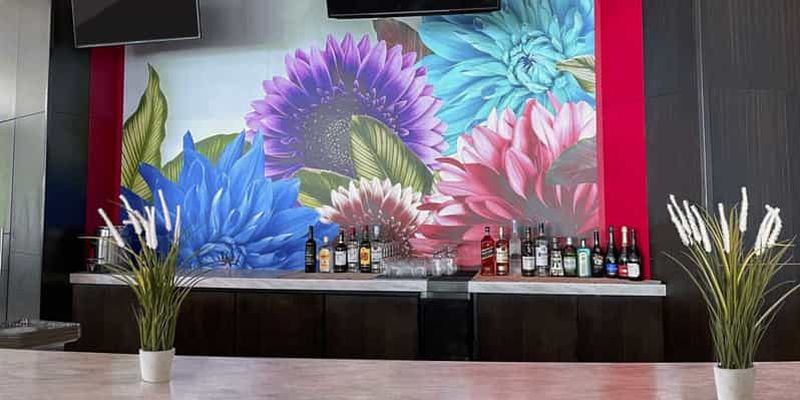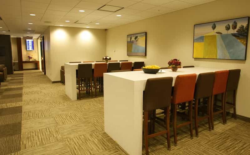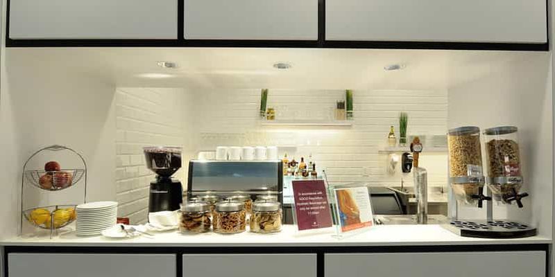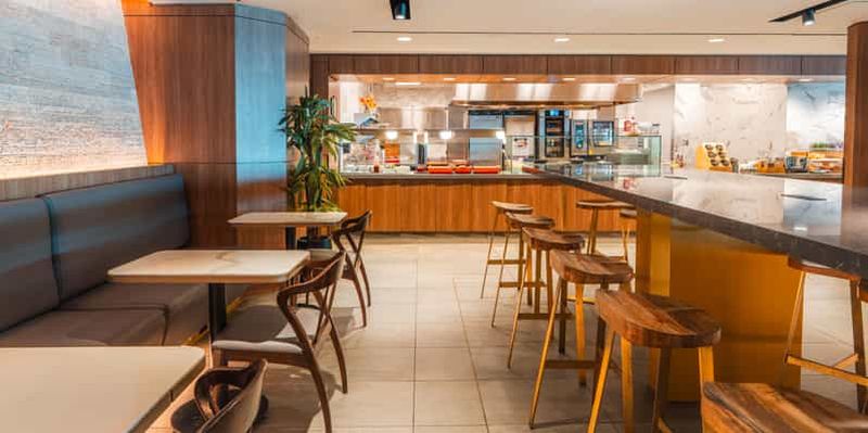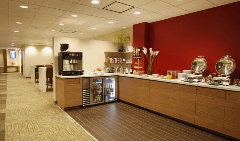 Ce salon dispose de : Bière, Station de recharge, Nourriture et boissons, Téléphone, Options végétariennes, Wi-Fi