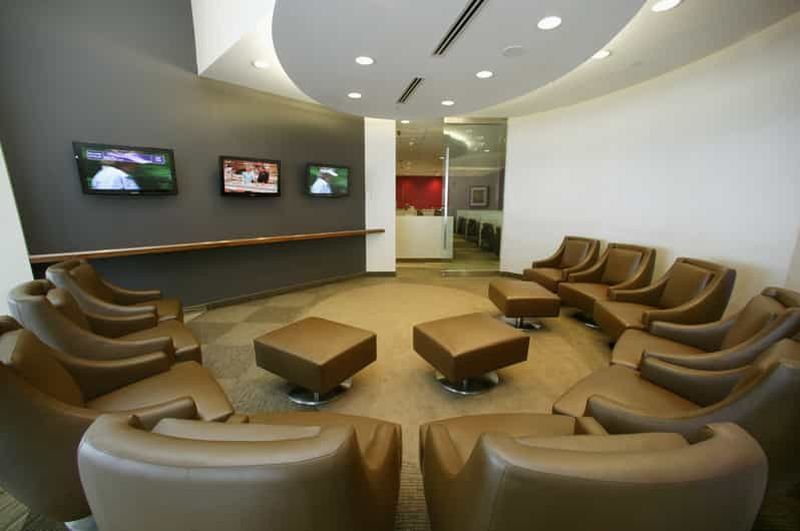 Ce salon dispose de : Bar, Station de recharge, Informations sur les vols, Nourriture et boissons, Lounge Bay, Chaînes de télévision, Options végétariennes, Wi-Fi
