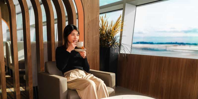 Détendez-vous et rafraîchissez-vous avant votre départ ou entre deux vols dans le confort d'un salon Plaza Premium à l'a...