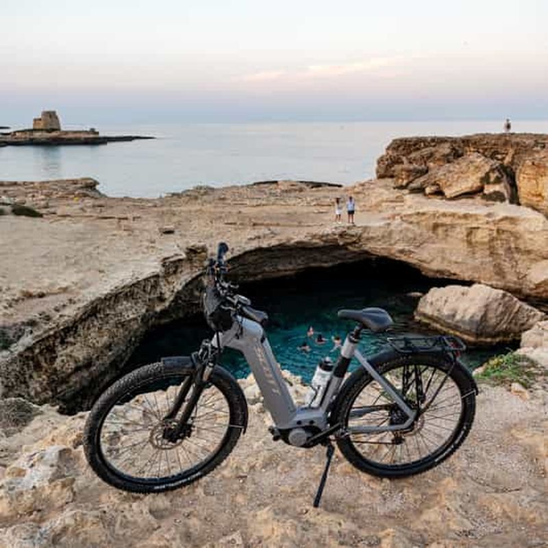 Découvrez le Salento avec un circuit autoguidé en vélo électrique. Vous visiterez San Foca, Roca et la Grotta della Poes...