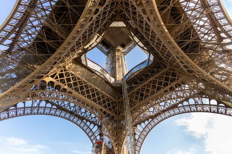 Structure en métal de la Tour Eiffel vue depuis le sol