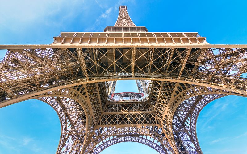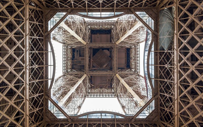 Structure en métal de la Tour Eiffel vue depuis le sol
