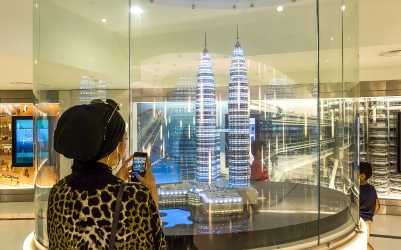 L’exposition interactive, installée au sein du grand hall, plonge les visiteurs dans l’histoire passionnante des Tours Petronas, inaugurées en 1998. Vous y découvrirez des maquettes, des vidéos explicatives et des bornes tactiles permettant d’explorer chaque étape du projet. Conçue pour susciter la curiosité, cette présentation immersive aidera à mieux comprendre les défis architecturaux relevés et le rôle symbolique des tours pour Kuala Lumpur.