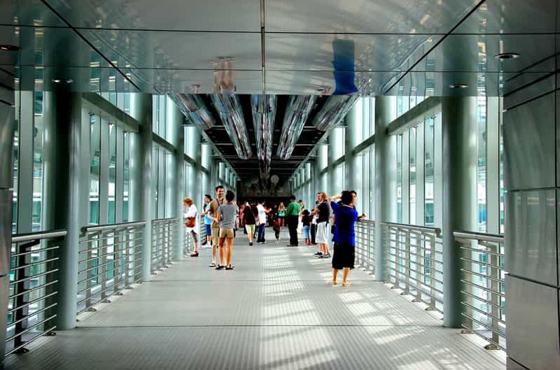 La liaison aérienne entre les deux édifices se trouve aux 41e et 42e étages et n’est pas fermement arrimée. Elle peut en effet se déplacer légèrement pour accompagner le mouvement naturel des tours sous l’effet des rafales quotidiennes. Cette ingénieuse flexibilité assure davantage de sécurité et de confort aux visiteurs.