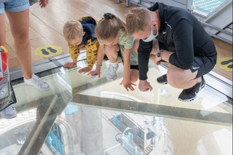 Les passerelles supérieures, inaugurées en 2014, offrent une expérience unique avec leur plancher de verre situé à plus de 40 mètres au-dessus de la Tamise. Vous pourrez y admirer le fleuve, les bateaux et les rues londoniennes qui s’animent en contrebas. Conçues pour relier les deux tours, elles s’inspirent de l’architecture d’époque et offrent une vue panoramique impressionnante.