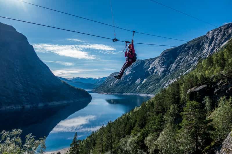 Une aventure en tyrolienne pleine d'adrénaline à travers les montagnes Trolltunga, tout en admirant de magnifiques paysa...