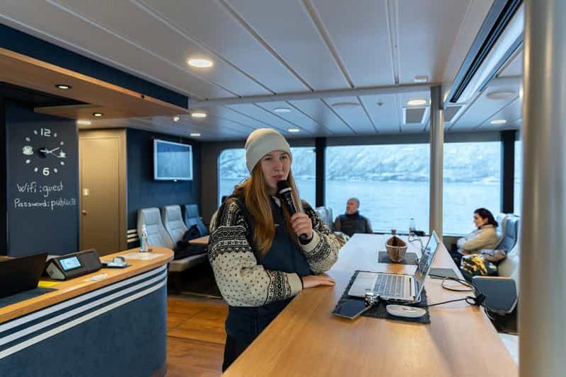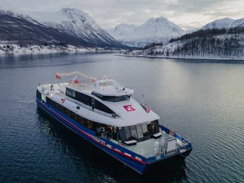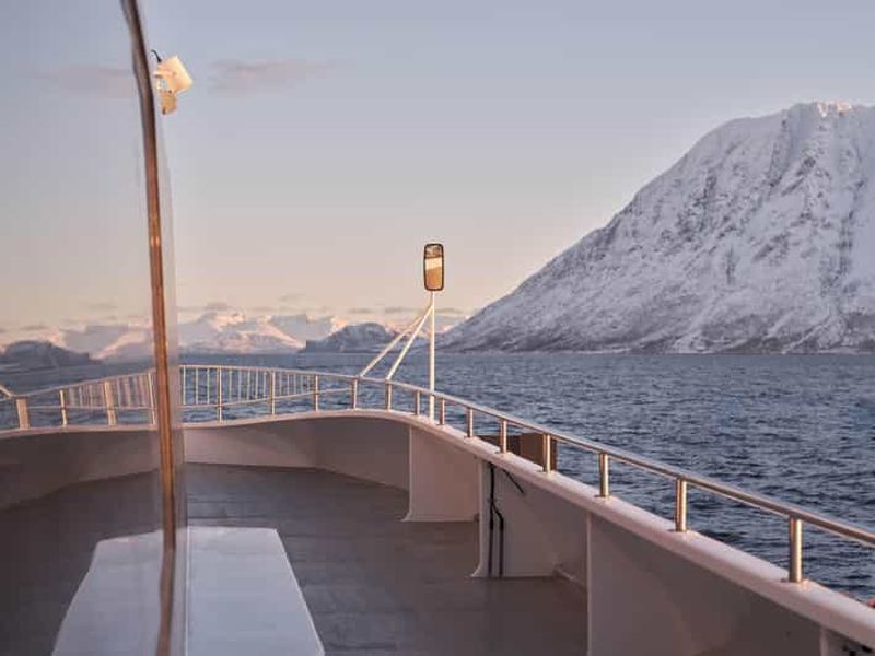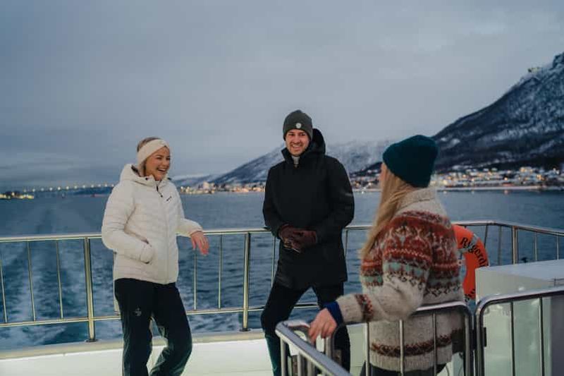 Naviguez depuis la ville de Tromsø à bord d'un catamaran durable pour cette croisière guidée dans un fjord, à travers de...