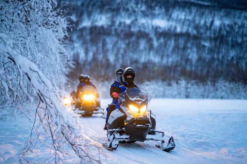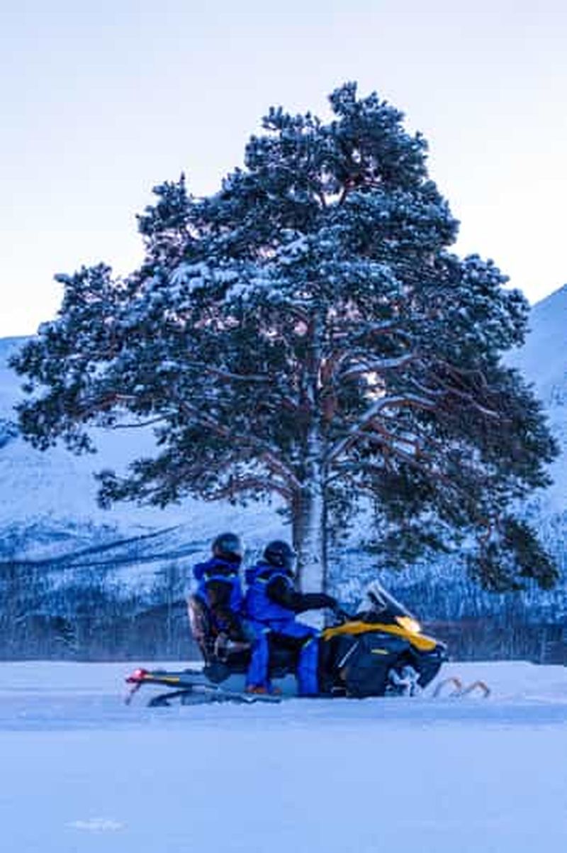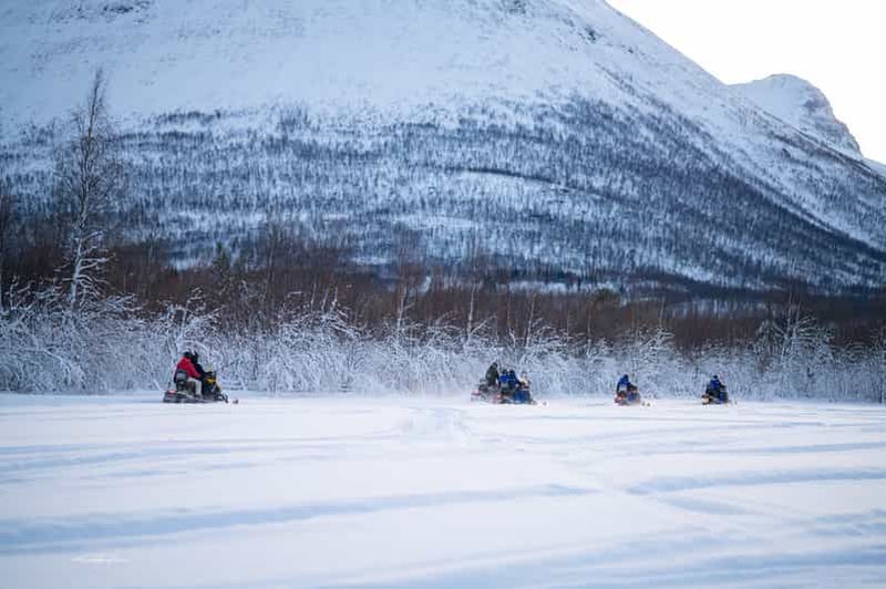 Lors des excursions en motoneige à Tromsø, vous traversez des paysages arctiques immaculés, entre vallées enneigées et plateaux ouverts, souvent à l’écart des lumières de la ville. Selon les itinéraires, vous pouvez rouler dans l’arrière-pays de Tromsø, en direction des fjords et des montagnes environnantes, avec des points de vue sur l’océan et les sommets qui encerclent la région. Ces sorties durent généralement une demi-journée à une journée complète, avec pauses photo et moments de détente en pleine nature.