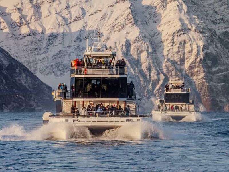 Observez les orques, les rorquals à bosse et d'autres espèces se nourrissant dans les fjords arctiques, depuis le confor...