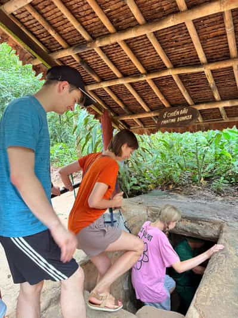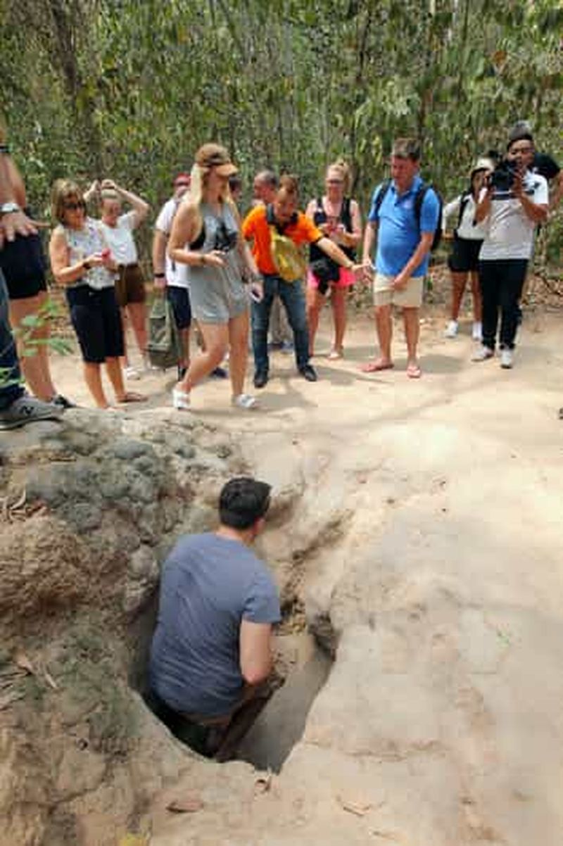 Cette option est disponible pour les groupes de 2 à 12 personnes et inclut tous les frais d'entrée, le déjeuner (menu fixe), l'assurance voyage et la prise en charge aller-retour à l'hôtel dans les districts 1, 3 et 4 d'Hô-Chi-Minh-Ville.