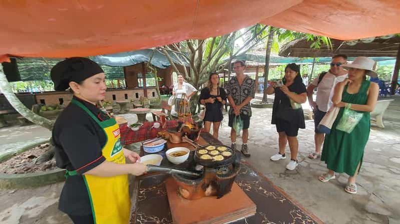 Explorez des tunnels cachés, naviguez sur le Mékong en sampan, dégustez des spécialités tropicales, observez la vie au b...