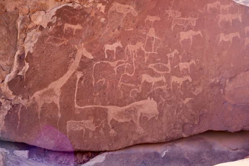 Twyfelfontein, site emblématique de Namibie, abrite l’une des plus grandes concentrations d’art rupestre d’Afrique. Inscrit au patrimoine mondial de l’UNESCO, il présente plus de 2 500 gravures laissées par des chasseurs-cueilleurs il y a 6 000 ans. Ce lieu sacré offre un aperçu fascinant des croyances et modes de vie anciens à travers ses pétroglyphes représentant animaux et symboles mystérieux, témoignant d’une culture riche et durable au cœur d’un paysage désertique saisissant.