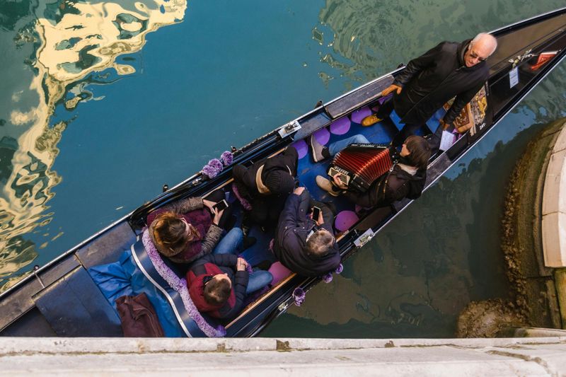 La gondole elle-même représente un chef-d’œuvre d’artisanat : 280 pièces de huit essences de bois différentes, assemblées selon des techniques inchangées depuis le XVIe siècle, pour un poids d’environ 600 kilos et une construction asymétrique qui compense naturellement la poussée latérale de la rame. Le respect dû au gondolier va au-delà du simple service touristique, c’est un gardien d’une tradition millénaire (on évite donc de hurler, de se lever en cours de route ou de mettre de la musique sur son téléphone, le silence fait partie de la convention tacite qui accompagne chaque balade).